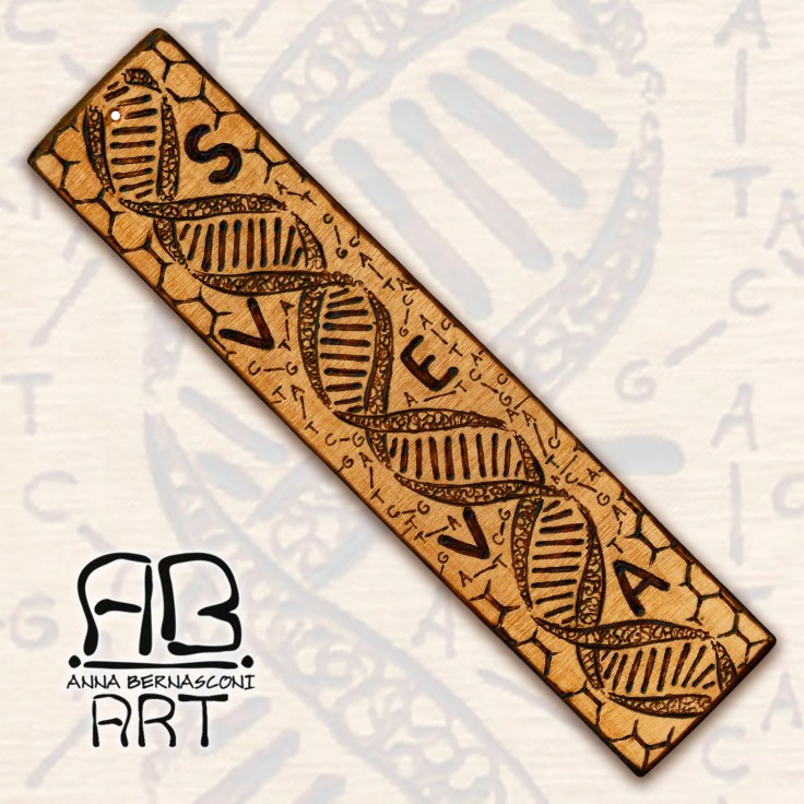 In questo caso mi è stato chiesto di realizzare uno dei miei “mini quadri – segnalibro” per una ragazza di noma Sveva, studentessa di biologia e particolarmente appassiona di genetica, quindi il desiderio del committente era che la decorazione richiamasse il tema “DNA”.