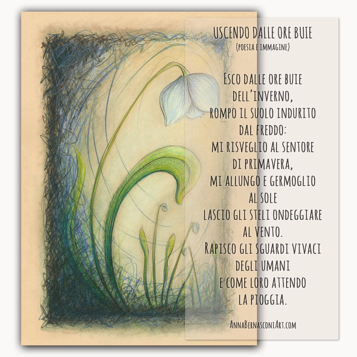 ma quanti regali in questo post mia cara Anna..che bello..la tua deliziosa e delicata cartolina, un dono alla primavera che è arrivata e concilia anche molto il sonno( te lo assicuro ci sono nata), la tua deliziosa poesia e poi una musica ricercata nel post dell’Alligatore sempre pieno di primizie..cosa vogliamo di più personalmente riposare.Non sono troppo in palla. Per te un bacio enorme e grazie!